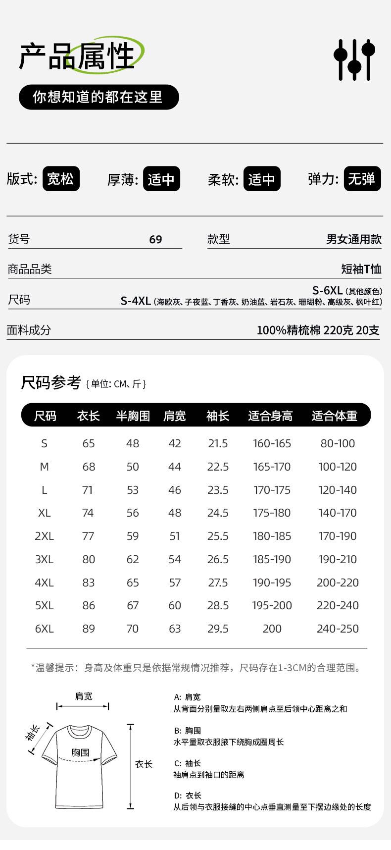 220克20支,加厚紧密纺款 S-6XL可选
